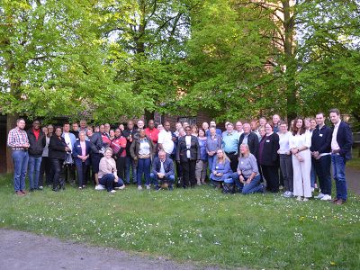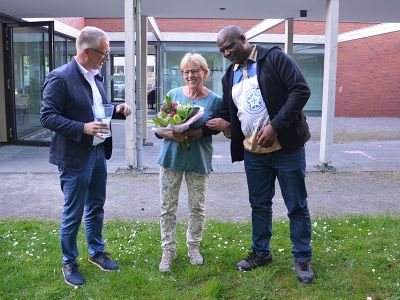 Im Anschluss an die Gespräche kam die Gruppe unter den Linden vor der Emmauskirche zum Gruppenbild zusammen, tanzte zum Partnerschaftssong „Are you ready for Odi-Bula?“ und sang ein Geburtstagsständchen für Peter Hartwig aus der Kirchengemeinde Brelingen, der trotz Geburtstag am selben Tag natürlich dabei war. Seine Frau Dörte Behn-Hartwig ist seit vielen Jahren die treibende Kraft, das Herz und auch der Kopf der Partnerschaftsarbeit im Kirchenkreis Burgwedel-Langenhagen. Mit einem Blumenstrauß und herzlichen Worte dankte Superintendent Dirk Jonas ihr für ihr großes Engagement; die Synode und ihre Gäste schlossen sich mit viel Applaus an.