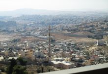 Gabriele Zander, Pfarrerin der EKD im Evangelischen Pilger- und Begegnungszentrum der Kaiserin-Auguste-Victoria-Stiftung, begrüßte die Gruppe in der Himmelfahrtskirche auf dem Ölberg. Vom Turm der wilhelminischen Kirche aus bot sich ein weiter Blick über Jerusalem und das Umland; deutlich zu erkennen waren Teile der Sperranlagen, die Israel vom palästinensischen Westjordanland, der sogenannten Westbank, trennen. Bis zu acht Meter hoch ist die Stahlbetonmauer, die sich an Jerusalem entlang zieht und die Menschen aus dem Westjordanland nur mit israelischer Arbeitserlaubnis oder ärztlichem Attest in westlicher Richtung passieren können. Zermürbend sei der allgegenwärtige Konflikt, berichtete Gabriele Zander; überdecke manchmal die Freude an der Arbeit im Heiligen Land.