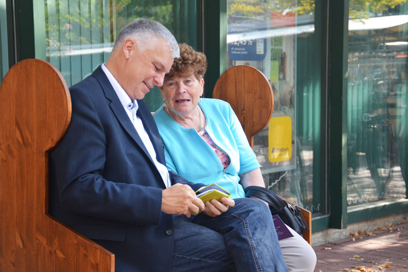 Hedwig Kuhl, eine alte Dame aus Langenhagen, die ihre Einkäufe auf dem Markt erledigt hat, setzt sich als erste – sie wählt den Platz nehmen Mirko Heuer. Aufmerksam hört der Bürgermeister zu, macht sich ein paar Notizen, nickt zustimmend, fragt nach. Hedwig Kuhl hat ein ganz konkretes Anliegen: Zwei Ampeln und deren kurze Grünphase für Passanten machen es ihr schwer, zum nächsten Lebensmittelmarkt zu gelangen. „Alte Leute können einfach nicht mehr so schnell laufen“, sagt sie. Abhilfe verspricht der Bürgermeister an diesem Tag nicht, aber alle, die neben ihm Platz nehmen, können sicher sein, dass er gut zuhört.