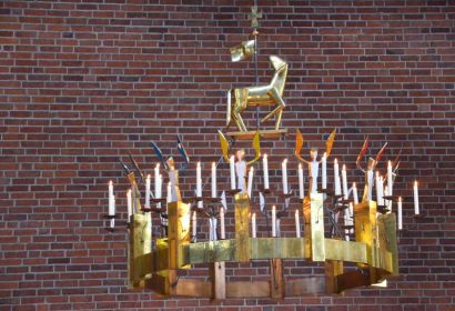 Die Kirchenkreissynode kommt in der Emmaus-Kirchengemeinde Langenhagen unter dem Jerusalem-Leuchter zu ihrer Herbstsitzung zusammen. Foto: Andrea Hesse
