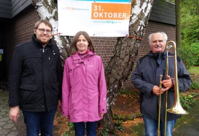 Pastor Sebastian Müller (links), Kirchenmusikerin Susanne Fieder und Posaunenchorleiter Harald Wittig freuen sich auf den Reformationstag. Foto: Silke Reißmann