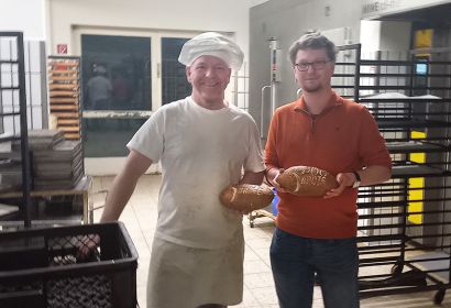 Bäckermeister Frank Hartmann und Pastor Christoph Klöcker hatten viel Freude an der Aktion "5.000 Brote". Foto: Christoph Klöcker