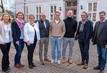 Dagmar Stoeber (von links), Anne Basedau, Sabine Preuschoff, Dirk Jonas, Luis Beimfohr, Niklas Kraemer, Thomas Schlichting und Daniel Küchenmeister freuen sich über den gelungenen Projektstart. Foto: Stefan Heinze