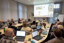 Webentwickler Felix Pfeiffer und das Team der Öffentlichkeitsarbeit des Kirchenkreises präsentieren den Online-Redakteuren die wichtigsten Neuerungen im Content-Management-System Contao. (Foto: Wolfgang Hornig)