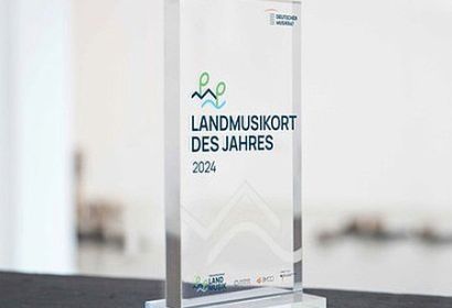 Eine Tafel aus Acrylglas zeichnet Brelingen als Landmusikort 2024 aus. Foto: Deutscher Musikrat